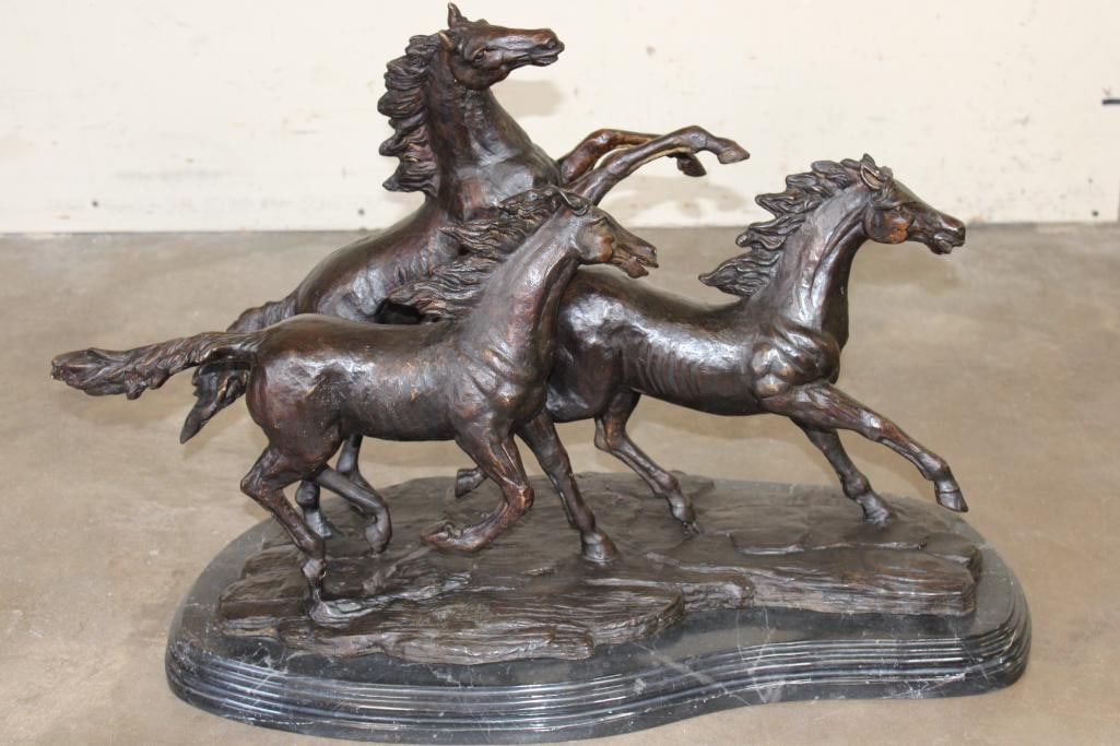 XXXL Wild HORSES Bronze on Sculpture on a Marble Base, Weight 84 lbs
