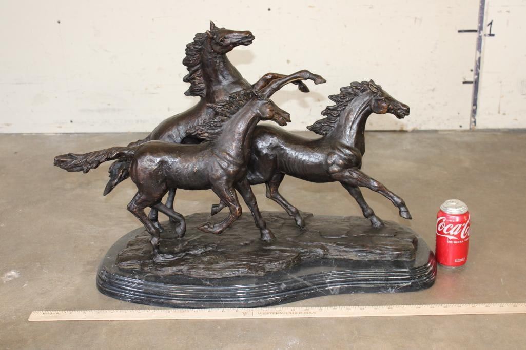 XXXL Wild HORSES Bronze Sculpture on a Marble Base. It measures 29" Long x 13.5" Wide x 19.5" Tall. The Total Weight is 84 lbs. COLLECTIBLE BRONZE SCULPTURES AND STATUES