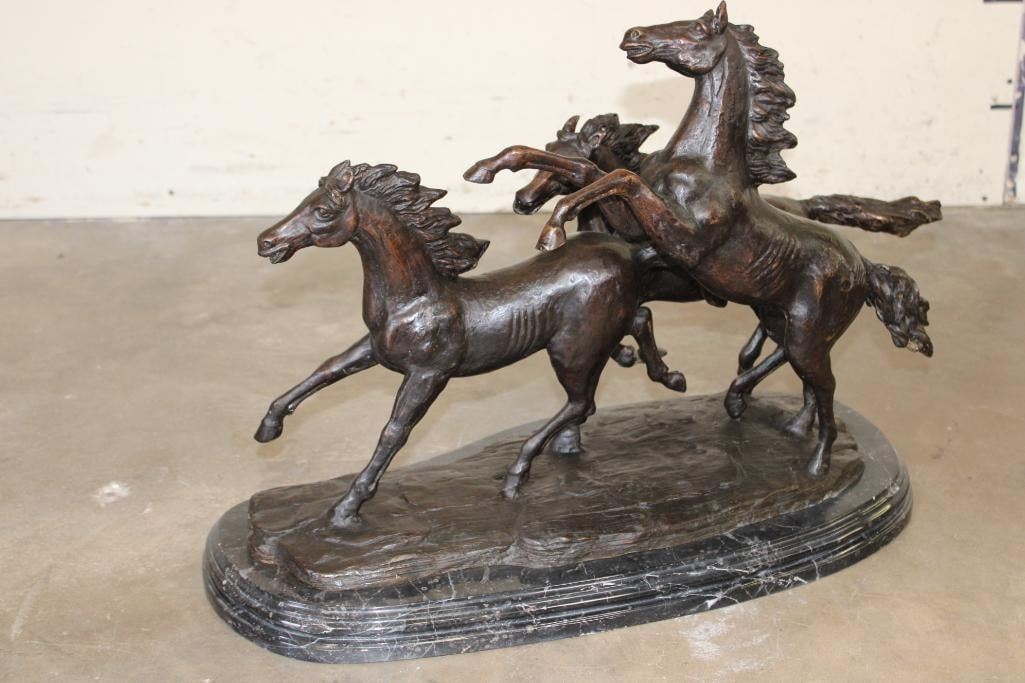 XXXL Wild HORSES Bronze Sculpture on a Marble Base. It measures 29" Long x 13.5" Wide x 19.5" Tall. The Total Weight is 84 lbs. COLLECTIBLE BRONZE SCULPTURES AND STATUES