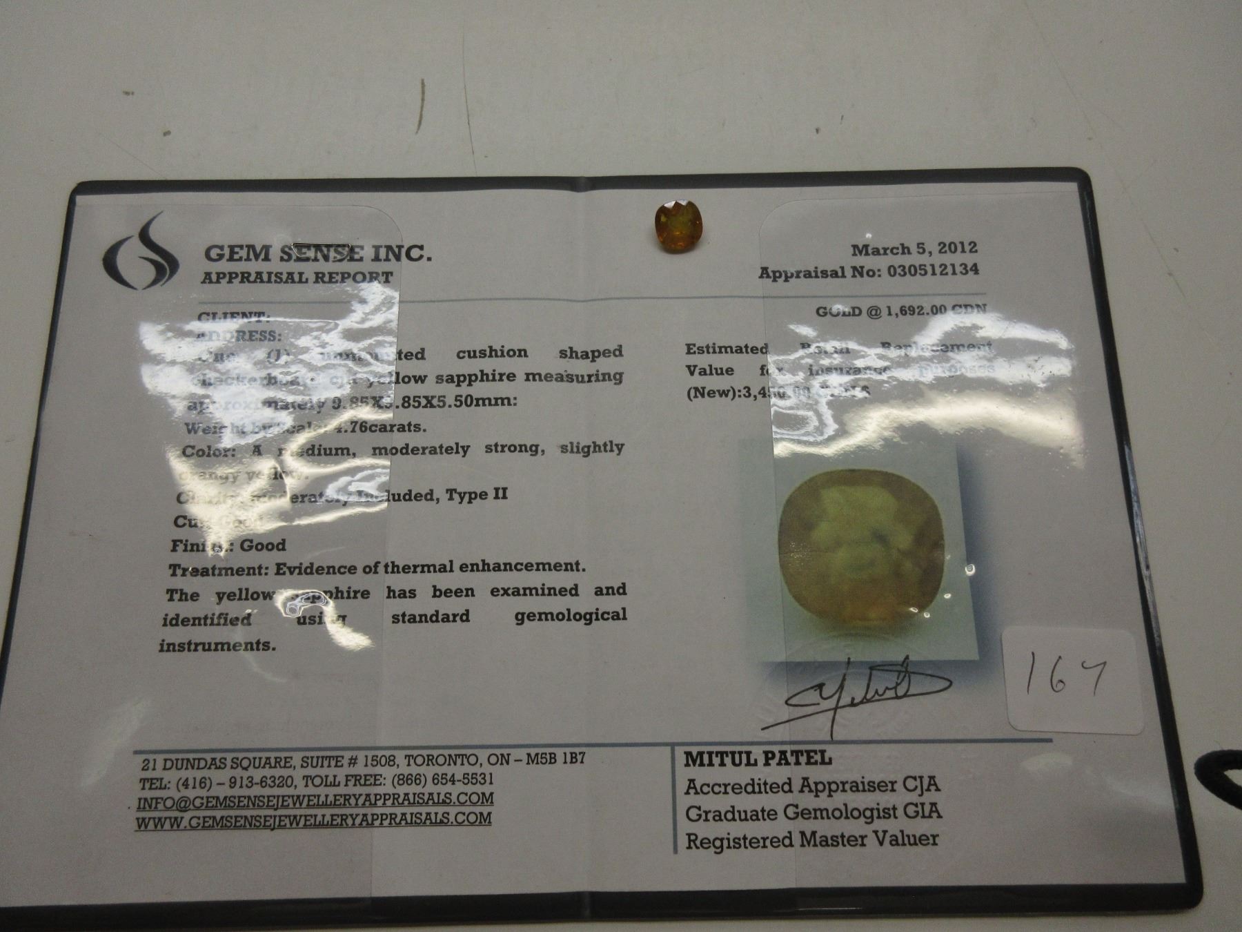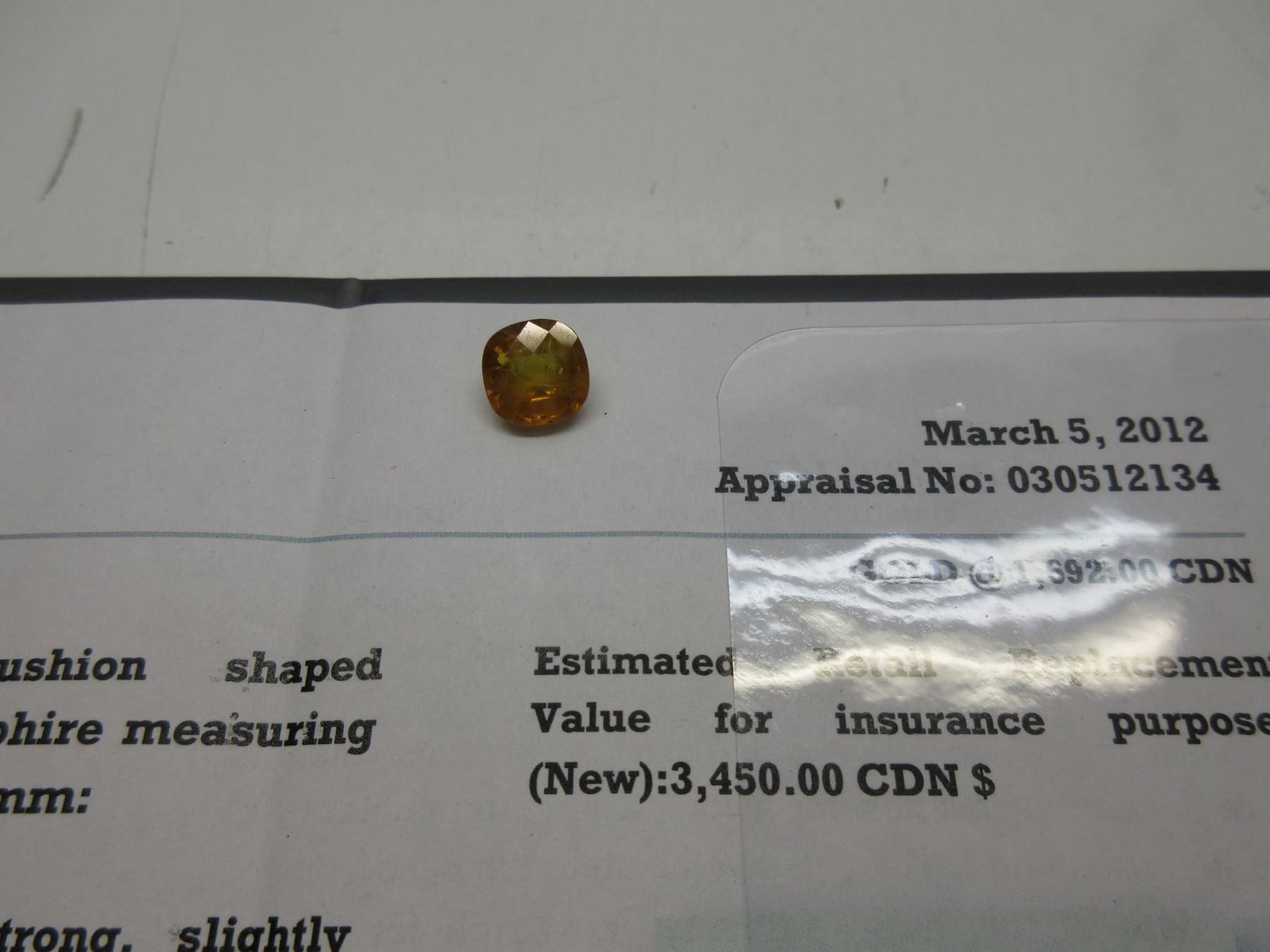 Yellow Sapphire - cushion shapped checkerboard cut Yellow Sapphire 4.76 carats Appraisal # 30513134