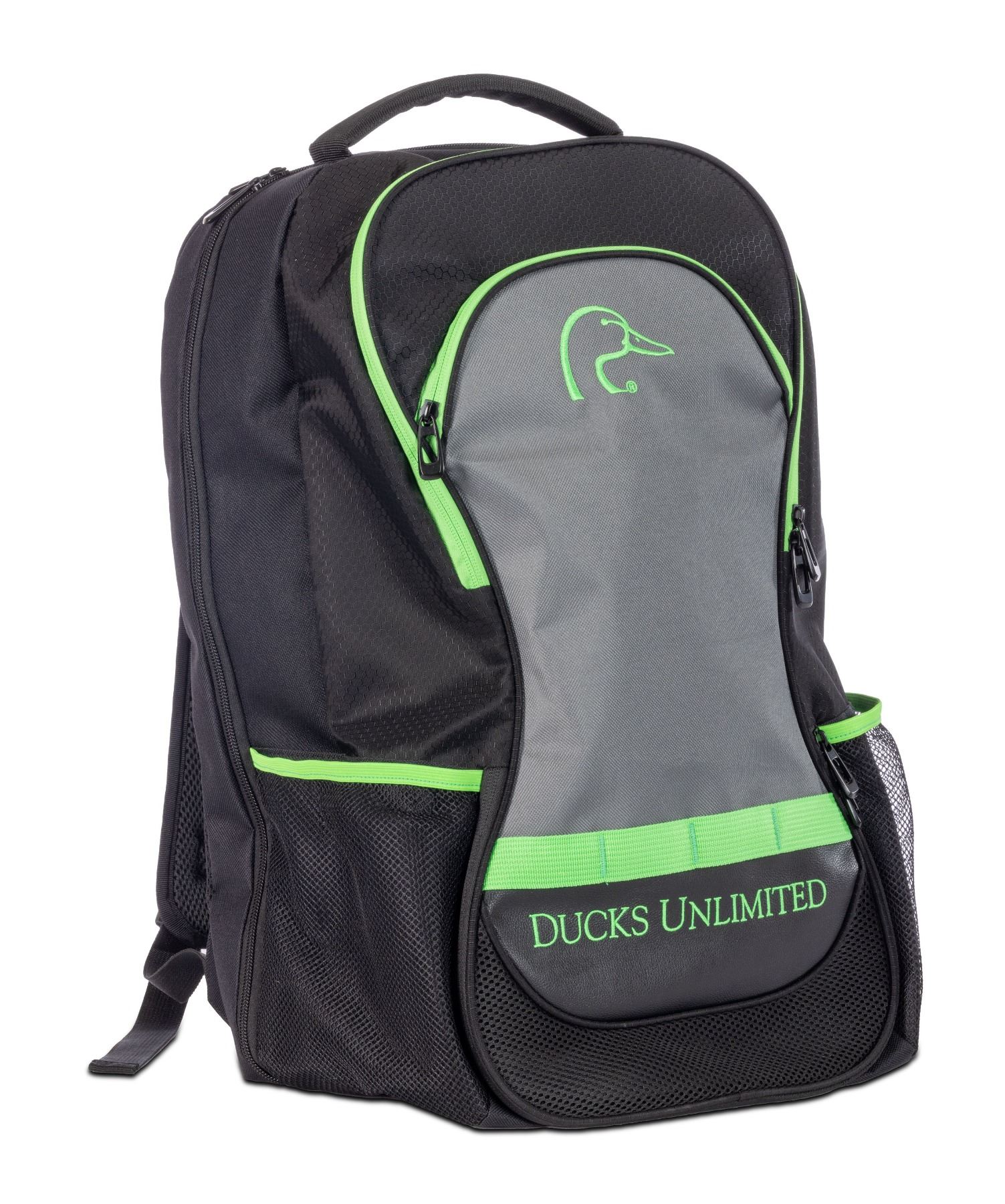 The Youth Backpack is the ultimate companion for school days or overnight adventures, seamlessly blending style and functionality. Its sleek design is elevated by vibrant green accents that not only catch the eye but also proudly display an embroidered duck head logo. The backpack is equipped with adjustable straps and a convenient top carry handle, ensuring a comfortable fit and easy portability. The multiple zippered compartments, including one with a dedicated computer sleeve, along with mesh pockets on each side, offer ample storage options. A thoughtful addition is the separate compartment designed for shoes, keeping belongings organized and clean. With dimensions of 20” x 13” x 8”, this backpack perfectly balances fashion with practicality, making it an ideal choice for young individuals on the move.
