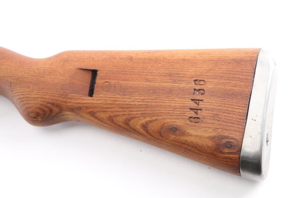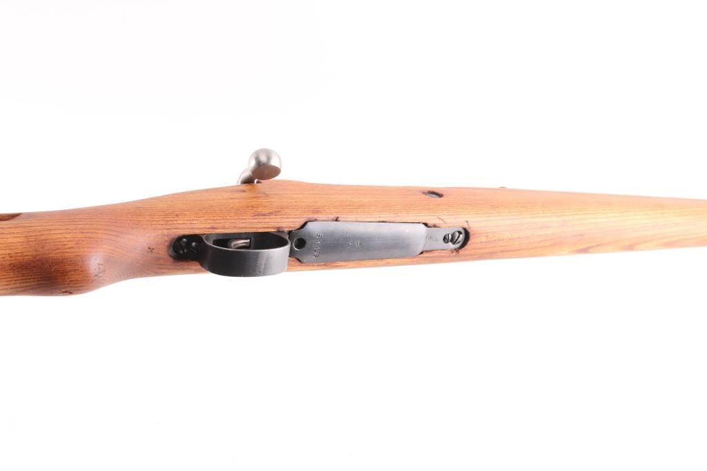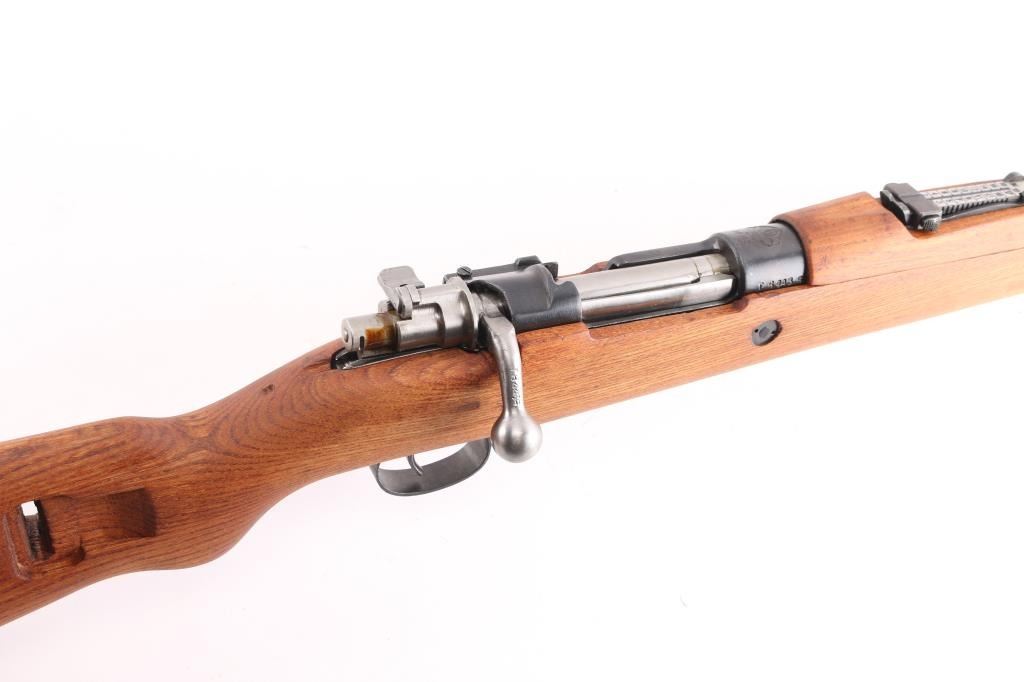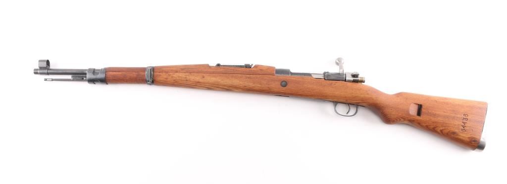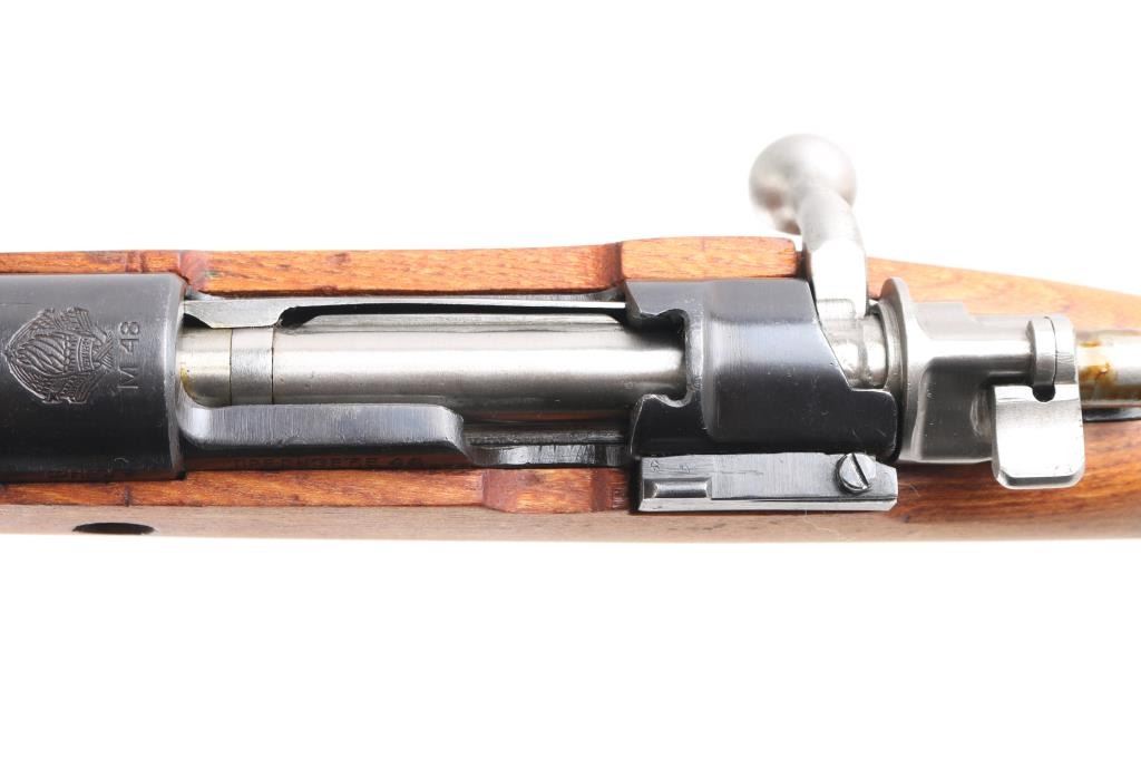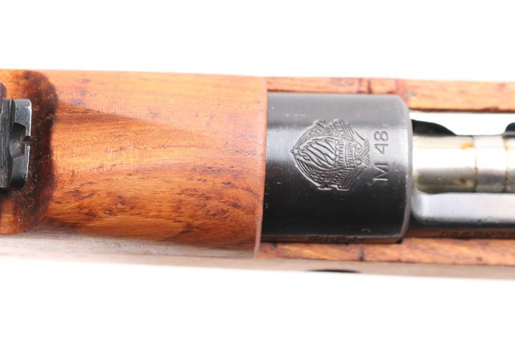 Bolt-Action. Model M48 produced 1950-1965. Yugoslavian made by Zastava, version of the German K98K. Yugo crest and "M48" on receiver ring. Features arsenal re-blued finish, chrome bolt, cupped bright metal butt plate, wood stock & handguard, 24" barrel, hooded blade front sight, tangent style rear sight, cleaning rod, bayonet lug, sling slots, manual safety. Matched sn's on receiver, bolt handle,stock, and floorplate Bore is excellent/bright. Action is smooth/tight. Retains 99% blue. Wood is excellent. Modified K98 sling attached. Gun Parts Corp. import markings on right barrel.