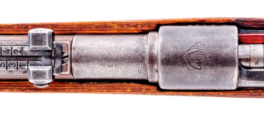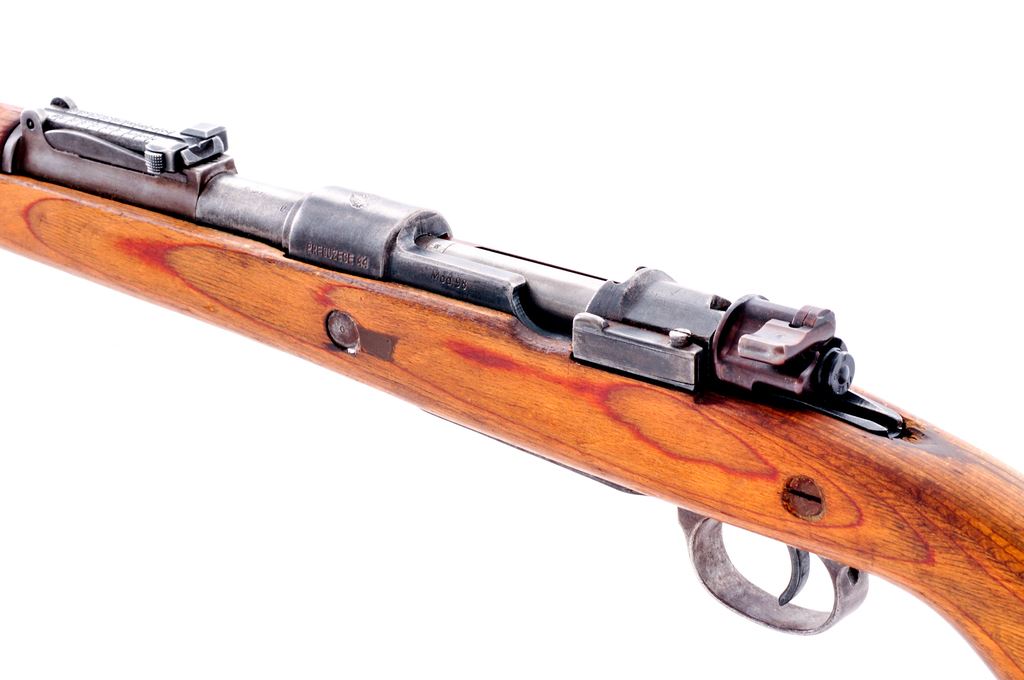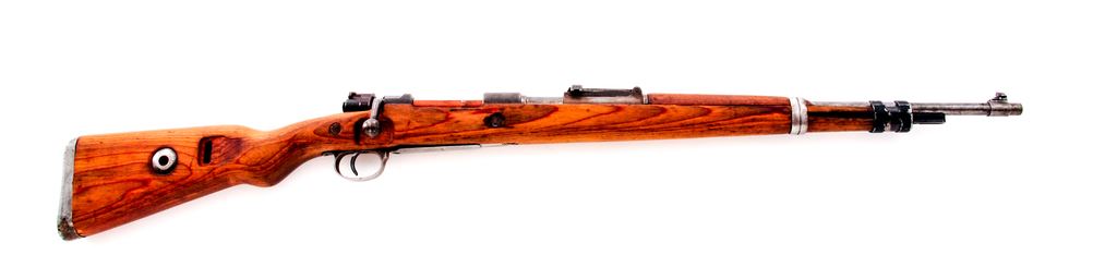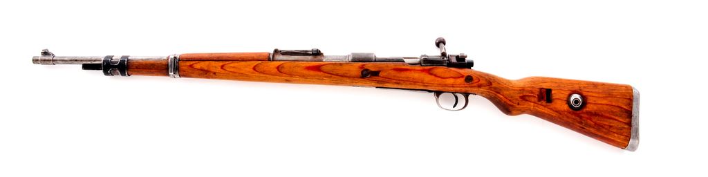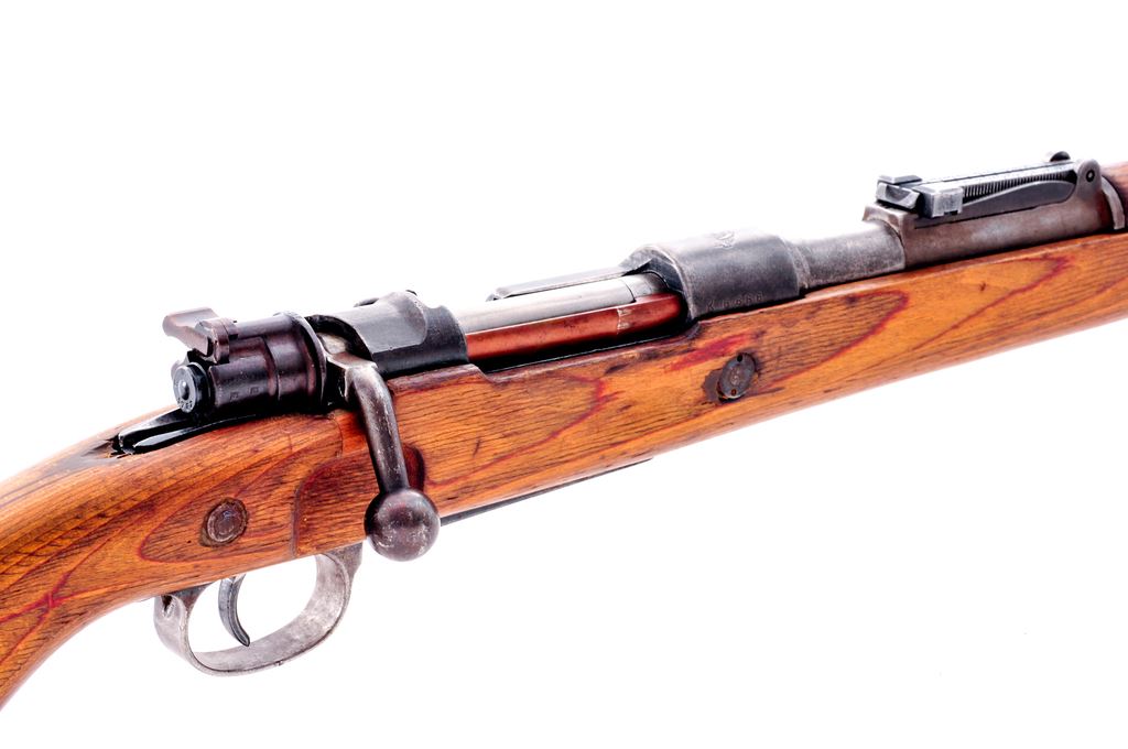 Yugoslavian Model 1948/98k Short Bolt Action Rifle, #K6666, 7.92x57mm cal., 24'' barrel, blue finish, laminated wood stock, inverted ''V'' front sight, tangent rear sight, missing cleaning rod and band spring. Floorplate and receiver with matching numbers. Top of receiver ring with Yugoslavian crest, and the left side reads ''PREDUZECE 44''. Bolt parts are also mismatched with various Waffenampt markings. Barrel is import marked. Condition is good to very good. Metal surfaces retain approx. 30%-35% blue finish. Bolt shroud and extractor have been refinished. Buttstock with a few very minor hairline cracks at the right side; small infill at the bolt handle cut out; some small chips missing at the toe. Left side with a small putty type repair at the mid-point, otherwise showing just normal shallow surface dents. Crisp action; bore is lightly frosted with good rifling. Est.: $150-$300. (C&R)