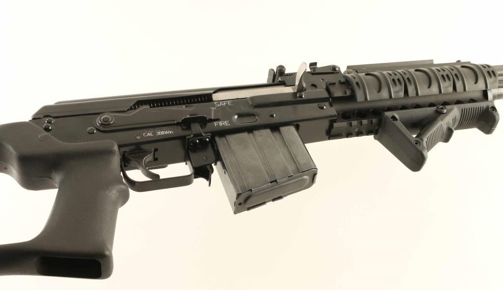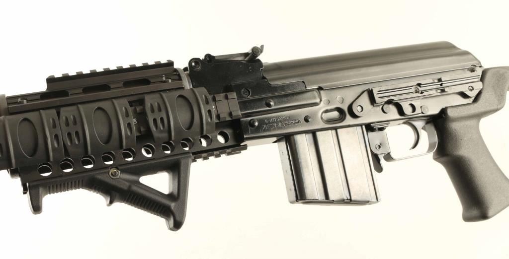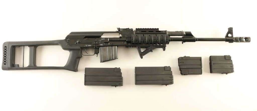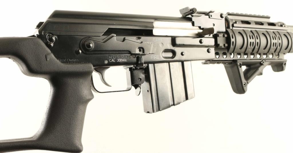 Rifle .Semi-Automatic. AK style Serbian made rifle imported by CIA. Accepts 7.62x51 NATO. Adjustable gas system. 19.7" barrel with flash hider, ladder rear, and adjustable front post sights. Black Synthetic skeleton stock, with rubber recoil pad. Rounded polymer hand guards, with hand rest extension. Picatinny style rails. Chrome bolt. Stock/hand guards are excellent. Bore is excellent/bright. Action is crisp/tight. Black metal finish is near excellent, with a couple of very minor scratches. Rifle is in almost new condition. Comes with 3 10-rd magazines, 2 20-rd Magazines, a black synthetic fore grip, in a Plano ammo box. NRA Condition-Near Excellent. Modern firearm.