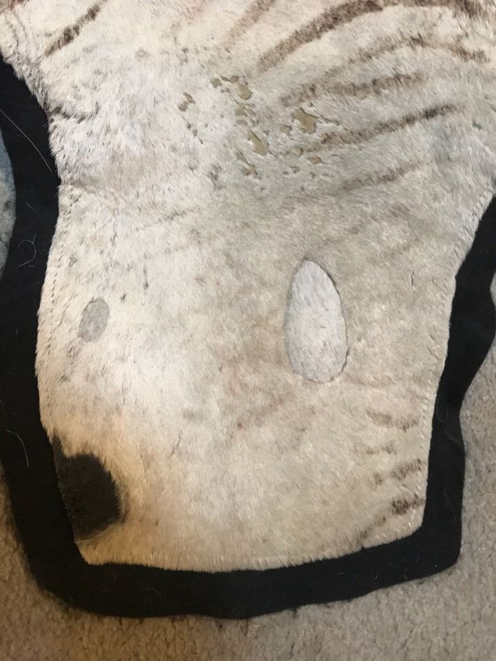 cross belly. (HAS SOME PATCHS ON HIDE APPROXMITLY 4”X4”)