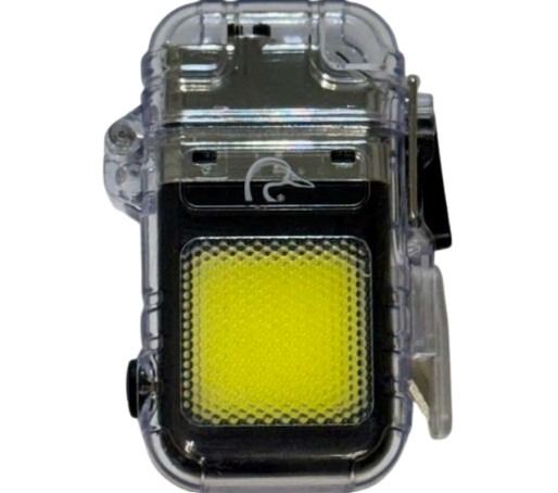 Plasma lighter with flashlight Features safety latch and seatbelt cutter Bright LED light with three modes Rechargable with USB-C power cord (included) Measures 3"x2"x5